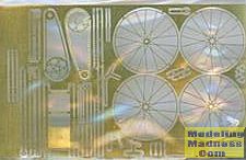 The kit has three sprues, one for the nearly complete bicycle, one for the rider and one for the weapons and other bits. There is also a photo etch fret for the bicycle that includes the wheel spokes, chain assemby and the various braces for the fenders.