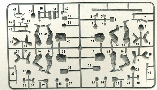 There is no instruction sheet, but on the back of the box are two views of each figure showing where the parts fit and giving color information. A parts diagram is also provided so you can identify each bit. Color information is provided with Vallejo, Tamiya, Lifecolour, Humbrol and Agama references, so you should be able to find something that will work.