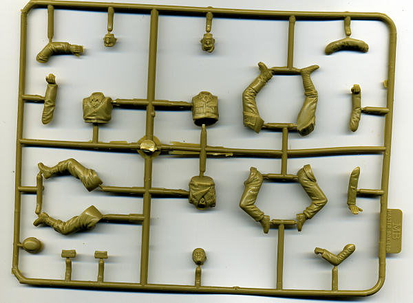 This is one of Master Box's smaller sets, containing three figures on one sprue. Since these are wounded soldiers and a medic, there is not the ton of additional equipment and weapons that are normally part of a set. All three are seated so one will need to be imaginative on how to pose them .