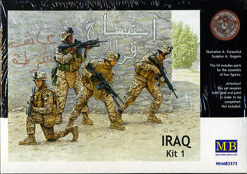 This new set from Master Box is for modern military soldiers. In this case, it is a set of four US Marine figures from some time during the last seven years in Iraq. The figures are posed as if getting ready to go around a building corner or perhaps from behind a tank, bushes or other obstacle. They are all well armed with current guns and have a goodly number of other bits and piecesof equipment as is the norm with modern soldiers in combat.