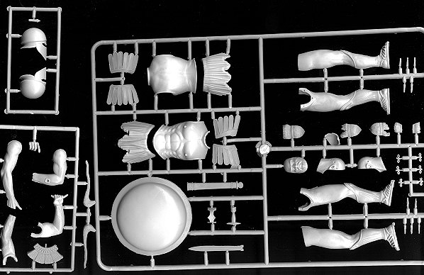 The single large and two smaller grey sprues are superbly molded with nary more than perhaps a bit of excessive seam flash here and there. It is obvious that the main sprue is used for at least one other figure (probably the Athenian) as some bits are not used in the making of this kit.