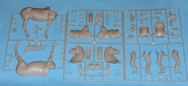This kit falls into the latter category and portrays a French Cuirassier of the Napoleonic Wars. The kit is superbly molded and comes on three sprues, over half of which is dedicated to the horse on which the figure is mounted. I found no molding flaws at all aside from a teeny amount of flash on a few bits. The horse is molded with the legs as a single piece so there is no worries about having to deal with a seam line on this most difficult portion of the figure.
