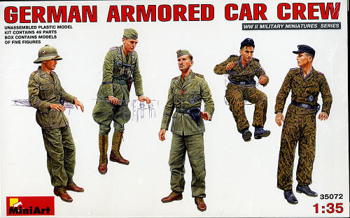 Continuing with their fine figure sets, this new one from MiniArt consists of five figures as would be in and around an armored car. The figures are very nicely molded as are all MiniArt figures. I've found that it is a good idea to give them a wash in warm soapy water to remove any mold release agent that may be on them.