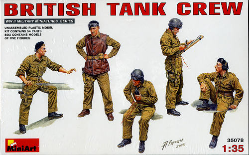 Here is a fine set from MiniArt for those who enjoy building British vehicles, specifically tanks. Like most of MiniArt's figure sets, there are five figures in this set. They are in various poses and all dressed in coveralls, some with helmets and one with a leather vest. These sectional figures are all very nicely molded and should be pretty easy to construct.