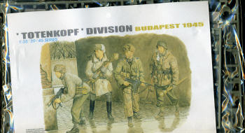 The kit also comes with a set of Dragon figures. These are items that are excess inventory as they come with photo-copied cover/instructions. The set is #6095 'Totenkopf Division. and includes four figures. The Farmyard does not come with animals and for Knights of Nikt, there is no shrubbery.