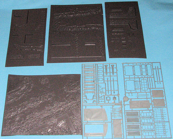 The set comes with two injected plastic sprues for the detail pieces like signs, doors, windows and the like.
