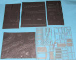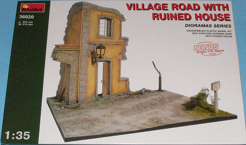 Next in their growing line of Diorama Bases, this MiniArt set has a corner section of a house, a small piece of wall with sign and a well travelled road in between the two. In fact, from the look of things, it is a 'T' crossing. In line with their other diorama kits, the majority of the parts are constructed from thick, dark grey vacuformed plastic. This material ensures that the structures will be light and still allowed to show a great deal of detail. As good as you'd see in most totally injected plastic kits.