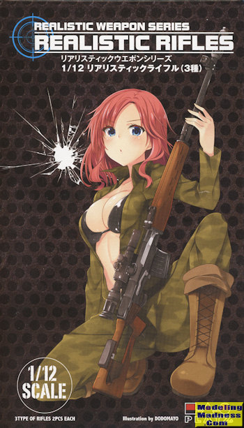 The instructions provide pictures for assembly and that is what I used to show the parts. There is also a complete painting guide for each of the rifles. No decals are included or needed. Despite everything being in Japanese (including the images......), assembly should not be an issue. Both Gunze and Model Master paint references are provided, though I'm sure you could use many other brands for these. I am sure that many will be disappointed, but the anime babe is not included.