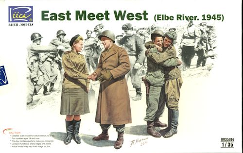 This particular set by Riich Models is subtitled "East Meets West: Elbe River 1945". For those who are history fans, you know that the Soviet and US army met at the Elbe River late in the war and there was much joviality at the meet. It was also a major photo op and many photos were taken by both sides of the event.