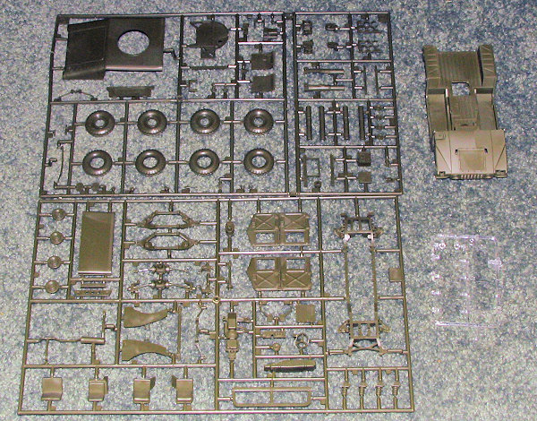 This looks like an Italeri kit, mostly due to the very crisp molding and the plethora of ejector pin marks on one side of all the major molds. This includes the interior doors and the underside of the chassis, areas where removal of these pesky things will be nigh near impossible.