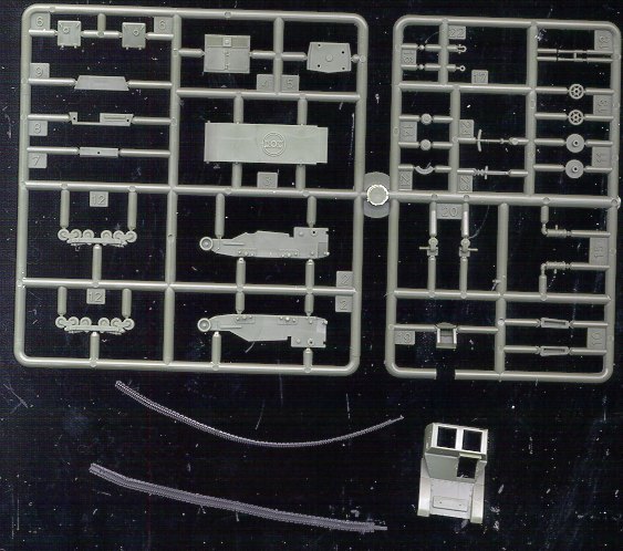 opening the box, one finds one sprue, two thin tracks, and an upper hull