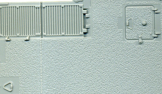 er details is includes as well as a section of braided wire for the tow cable. Slide mold technology is used as well that offers scale openings for guns and more accurately molded parts. The detailing is really well done as you can see by this close-up image of a section of the engine cover.