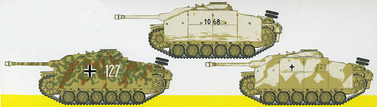 Markings are provided for three vehicles. Starting at the top is a vehicle from StuG. Bridage 226 in East Prussia during 1945. Next, on the lower left is from StuG. Kp. 1019, 19 Luftwaffen Felddivision, Ukraine 1944. The last option is from Pz.Jg.Abt.2, 12 Pz.Dv. in Estonia during 1944.