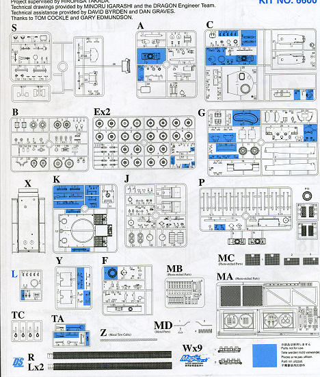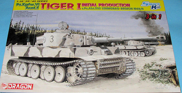 Markings are for three tanks with s.Pz.Abt.502, operating in the Leningrad sector. Two in winter white wash from the winter of 1942/43 with a base panzer grey color, and a third in overall panzer grey from September 1942. For the first time I can recall in a standard Dragon 1/35 armor kit, the color and markings guide is in full color. As usual, the instructions are quite comprehensive showing any modifications needed to the kit as well as any specific bits needed for specific markings options.
