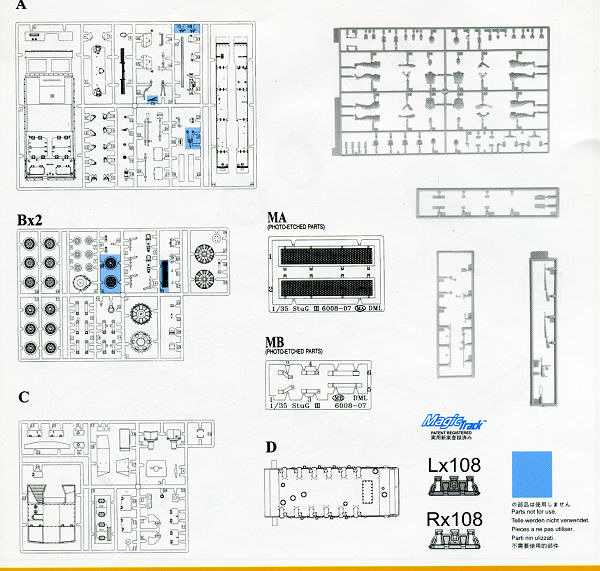 Markings are provided for two vehicles, which is a bit unusual as normally these orange box kits only provide one set of markings. One is the box art kit from Abt. 142 with the Death's Head markings. The other from the popular 'unknown unit; Russia'. You do get a bunch of vehicle numbers so you can do variations that are appropriate. The well done instructions show where everything goes and provide Gunze and Model Master paint references. The back of the sheet offers painting instructions for the figures that go along with it.