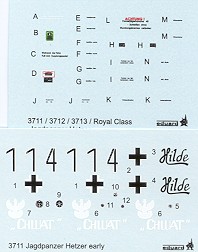 The kit instructions are very well done. They are in full color and use Eduard's '3-D' drawings that so many have found quite useful. Some parts are not used and are Xd out on the parts diagram. Color information is provided using Gunze and generic names. There are a myriad of construction steps provided in what is essentially an instruction booklet. This assures no confusion about what goes where. I really liked that there were additional views of what some of the various assemblies looked like when complete. Hetzers were not covered with markings, most of them carrying little more than insignia and perhaps hull numbers. Markings for 3 or 4 different vehicles are provided in two different camouflage schemes. The decals are quite well done and come on two sheets. One is a 'standard' set of markings while the second is kit specific. According to the sheet, it seems as if this is the first of three different Hetzer kits from Eduard.