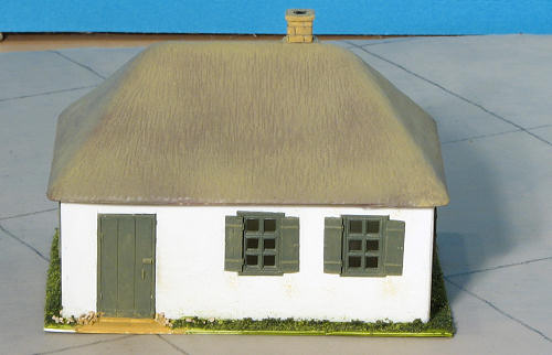 While all this was going on, I removed the flash from the shutters and door and cemented the four chimney pieces together. Be sure these are properly square as well. The shutters and doors were then given a coat of olive green, though in reality, any contrasting color would be good.