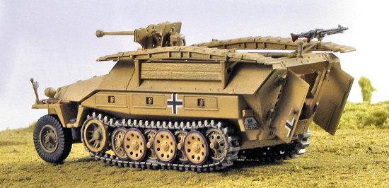 The early production models of this vehicle were issued to the 1st Panzer Division in 1939. There were four main models (A - D), with many variants. The initial idea was for a vehicle that could be used to transport a squad of infantry to the battlefield protected from enemy small arms fire, and with some protection from artillery fire. The open top meant that the crew was still vulnerable, especially to high explosive rounds and shell fragments.