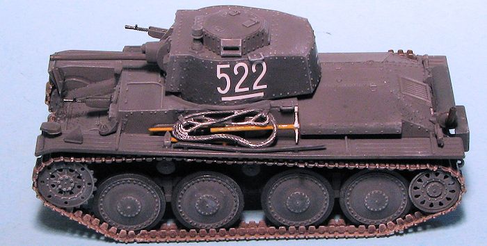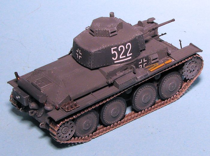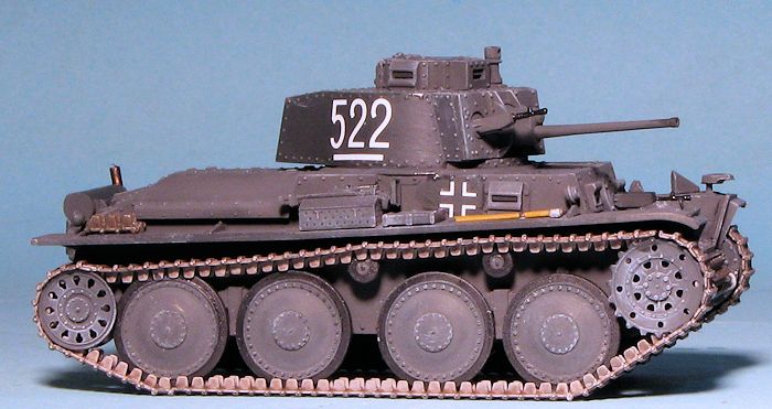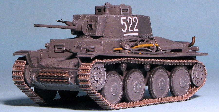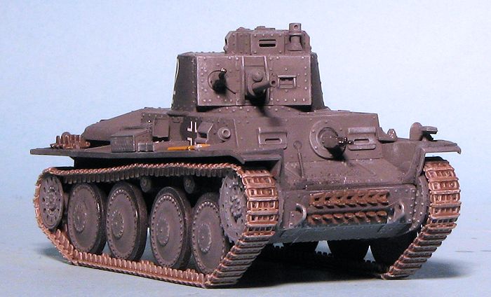 The Panzerkampfwagen 38(t) was originally a Czech tank of pre-World War II design. After Czechoslovakia was taken over by Germany, it was adopted by the German Army, seeing service in the invasions of Poland, France and Russia. Production ended in 1942, when its armament was deemed inadequate. In all, over 1400 were manufactured. The chassis continued to be produced for the Marder III (1942-1944) with some of its components used in the later Jagdpanzer 38 (1944-1945) tank destroyers, turretless assault guns, anti-tank guns and anti-aircraft guns.