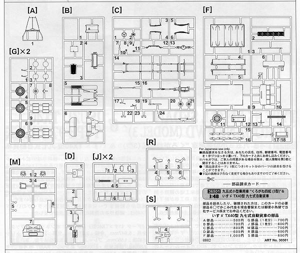 As we have come to expect from Hasegawa, the parts count for these kits is relatively high. Where some companies will combine a number of parts into one, Hasegawa has all of these separate. It does make for a more detailed product at the expense of ease of construction. I've shown the actual parts for the 4WD sedan and the sprue guide for the truck so that you aren't just looking at a mass of plastic.