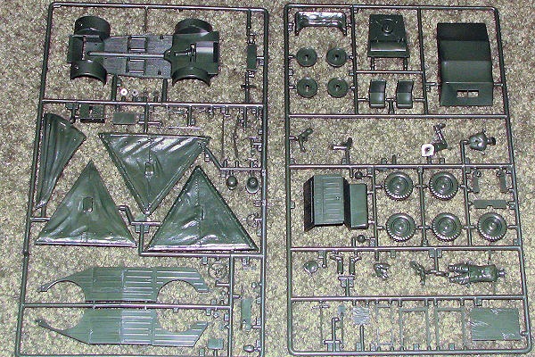 Italeri has been doing 1/35 armor kits for quite some time and many of their older kits are still quite nice and often quite accurate as well. I'm not sure who else besides Tamiya might do this vehicle in this scale, but the kit is nicely done. Now with these older kits, one often finds that there are ejector pin marks in places you'd rather not see them. That is the case here with quite a few of them on the underside of the body and on the inside of the doors and such. I also found quite a few sink areas, again, on the underside of the chassis and on the thick portions of the figures. Sort of makes the figures less than useful as filling holes in the belly and back will effectively ruin any detail.