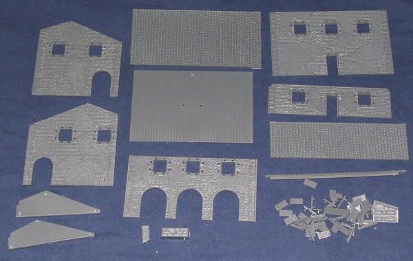 Kind of difficult to comment on the detail level. Raised or engraved panel lines are not an issue with a kit like this. The wall and roof portions look to be well done as the brick molding is superbly done. The wooden shutters and doors also look to be very nicely molded, though they could be a tad thick for the scale.