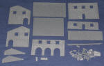 Test fitting the main pieces shows that they slot together quite nicely and so should build to be very sturdy construct. No decals are included. The construction sequence is printed on the back of the box. Colors are also given for various parts of the house. Basically wood shutters and doors, tan roof, sand walls and grey corners.