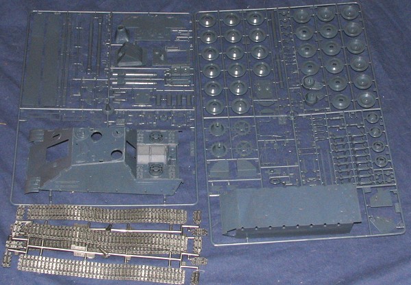 All of the suspension arms and wheels are separate with half of the construction process taken in making this portion of the vehicle. The rest is attaching the various bits and pieces onto the hull itself. Included is an engine piece with a few bits to make things look busy in there It has a separate hatch which can be removed if one so wishes. there are a considerable number of other pieces to fit and all of the upper hatches are separate so if you wish to build a full interior or just stick a figure in there, you can without resorting to any cutting and hacking.