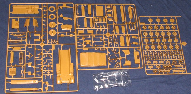 Overall detailing is really super with the instrument panel complete with molded in dials. The doors can be built with the side curtains up or down. Two different tops are also included; one raised and the other in the stowed position. The rear bed is well detailed with seats included as well as a goodly number of things to hang on the outside. This includes your picks, shovels, pry bars, and jerry cans. As you may well expect, this is a curbside without any engine detailing. However, Italeri has molded the hood so that if you do get an engine for it, you can display one side of the bonnet opened up.