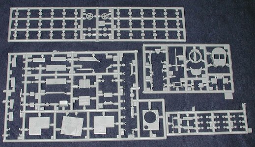 Detail on the parts is really quite good for a kit this small. There are the usual problems with some sink areas in the thicker pieces such as the gun barrel and searchlights, but not much of a real problem. There is no flash and ejector pin marks are engineered so that they will not be seen once the kit is finished. The tracks are of a vinyl as is the tow rope. Painting these may be a tad tricky but a good lacquer primer should cut into the parts enough so that other paints will stick OK.