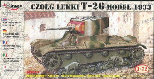 There are markings provided for four tanks. One is the box art vehicle from the Spanish Civil war in Olive Green and Sand with a large white Spanish cross on the turret top and the red/yellow flag markings around the turret sided and back. Next is one used in Spanish Morrocco in overall Forest Green with Cream and Brown camo stripes placed on the upper surfaces. An overall Panzer Grey version is next as used by the Germans after capturing it from the Russians. Finally, a Red Army T-26 in Khaki with a heavily applied and blotched winter white applied as used against the Finns in the Winter War of 1939/40. Decals are fairly well printed and very thin. They may also be a bit transparent as the whit seems to disappear against the light blue backing, but one really can't tell until they are used.