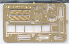 Even though the box top is rather generic in the name of this kit, the history section calls it a 3-t Opel Blitz, typ 3.6 - 6700A with provisional cabin. Ok, that means it has a wooden cab and in this case has a fuel tank on the back where the flatbed would normally go. Must be some sort of reason that the words Opel Blitz can't be shown on the cover. Much of the background history of this vehicle can be found in an earlier preview.