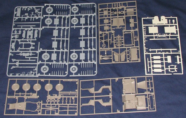 What we have here is basically a two-fer kit. You have the GAZ 67 light truck with an ammo trailer, and a 45mm anti-tank gun. To my knowledge, the only other GAZ 67 is a Tamiya kit, and one of their earlier kits as well. If you are familiar with Maquette kits, you'll notice that the chassis sprue on this is the same as on their BA-64 light armored car. Parts are well molded in various shades of plastic with no problems concerning sink areas or nasty ejector pin marks. Sure, the marks are there, but in easy to remove spots. Many of the other Maquette kits I've recently previewed have had rather heavy mold seams and some flash; this one isn't like that at all so it must be a newer molding.