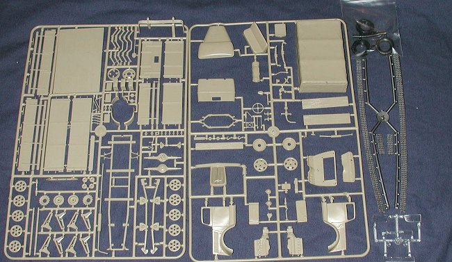 I've always had a fondness for trucks when it comes to military subjects and this one fits into that category....sorta. It also should appeal to those who are into tracked vehicles. From what I can see, Italeri took the the body of the standard Opel Blitz kit and added a replacement sprue for the chassis and running gear required for the Maultier. The overall level of detailig for the kit is superb. I found no flash, no sink marks, and no ejector pin marks in the 'wrong' place.