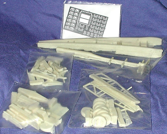 The kit itself is comprised of beautifully molded resin partsand a fret of photo etched metal, most of which is for the hand rails on theside of the launcher. There is some flash on the parts as well as a resin blockthat has to be removed, but that is normal for a resin kit. I saw NO air bubbleson any of the parts. The parts are in four separate bags to keep damage down toa minimum during shipment. It is helped by having a nice, sturdy box. The boxart is a simple black and white drawing. Frankly, I have no problem with kitsbeing produced with this type of box art. As the hobby becomes more and moreenthusiast oriented, it just makes sense to have a simple drawing rather thanspending the money on expensive artwork.