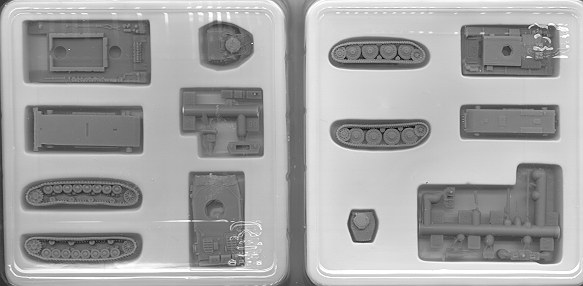 What you see on the screen is pretty well full size. You get a PzKw IV Ausf D (on the left) and a Pz.38(t) (on the right). As you can see, they are both pretty simple kits with a hull top and bottom, tracks, turret and a small sprue with some of the other bits. The overall molding is pretty good, but the sprue is thick and so are the attachments. The detailing of the parts on the sprue is only fair with some rather large mold seams to have to remove from a few of the bits.