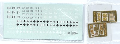 Included with the set are two small (of course, they are small: it is 1/144) frets. These parts are designed to either replace some of the plastic bits directly or to be attached after removing the injected sections. The instructions are quite good, though brief and consist of two construction steps and a painting guide. There is no mention of the etched bits in the instructions so these were undoubtedly a late add-on and the builder is on his own as to figuring out what is what and where it goes. A very large and comprehensive decal sheet is included and I'll bet that it is the same in all four of the sets that are currently on the market.