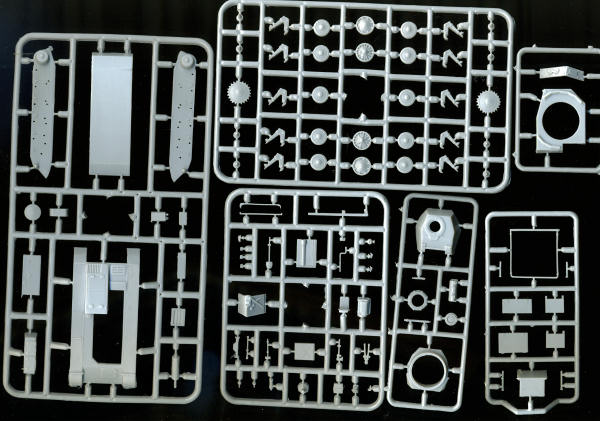 As seems to be the norm with 1/72 military vehicle kits, the main hull is built in sections. I was surprised to see that there is interior detailing with this one. Nothing major with just a transmission and bulkheads, but is does provide a basis for more detailing should one wish. The Panzer II was not a complex tank and so while there are considerable detail bits to add to the hull, it isn't overwhelming. Probably the most interesting part of this kit and something I've