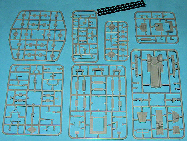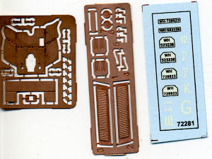 this version that is shown on the box art. The kit comes with the old style 'rubber band' tracks that are joined by heating the attachment tabs. Two etched brass, or perhaps they are etched copper, frets are very nicely done and appropriate for the medium. The more square one is specifically for the up-armored variant.| CONCLUSIONS |