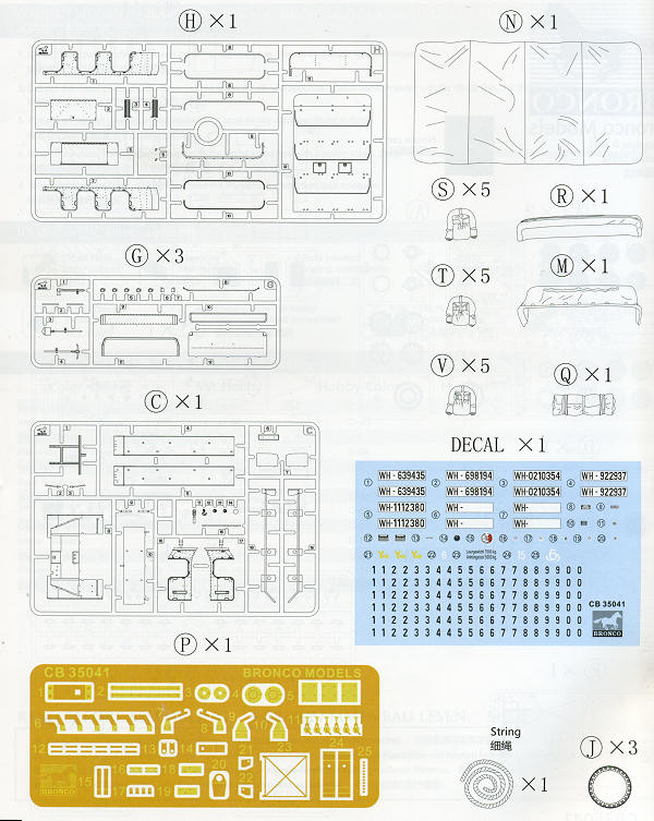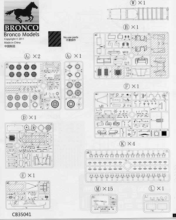 This is another of Bronco's well detailed military vehicle kits. As you can see, there are a lot of parts, not all of which are used on this particular kit. There is a photo etch fret included for some of the very fine detail parts which will be fit on various places throughout the kit, such as the fuel tank brackets, windscreen handles, fender attachment areas and things like that.
