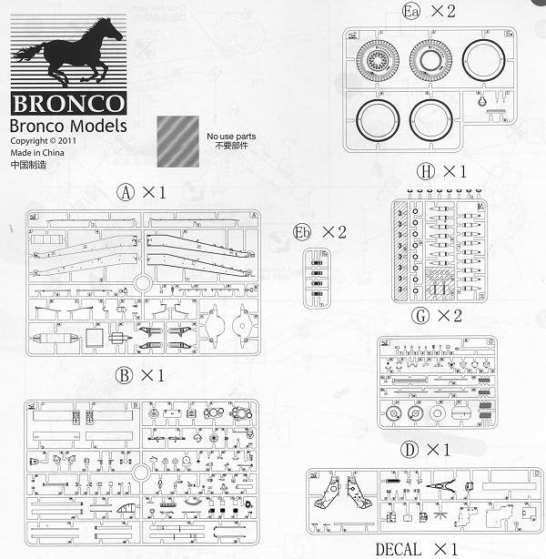 Bronco has provided us with another fine piece of towed artillery with the release of this 155mm howitzer kit. I was surprised at how long lived this piece was when I looked up the history of it. Typical of Bronco kits, there are quite a few parts and this is due to the amount of detail provided in the kit. Something that seems to be a sort of trademark is that there are areas along seam lines that have no bolt detail. This is to be added later by removing this detail from the appropriate sprue runner and adding it where appropriate. Now some modelers think that this is a bit much, but really, it is very time consuming to remove the mold seam from something as small as a bolt head or nut and thread.