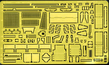 Molded in a tan plastic, undoubtedly to make it easier to paint, the kit has 13 different sprues, some of which are provided as duplicates, mostly for chassis bits, wheels, and accessories. Molding is excellent with superb detail that is very much up to standards. There is a nicely done photo etch sheet with plastic on both sides to help in cutting. A nicely done decal sheet provides for one of four markings options.