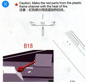 is well drawn and has detail drawings to help out. In some areas the builder will need to stretch some sprue. One note caught my attention and I have scanned that section from the instructions. Not many folks that I know can scratch build a universal joint out of sprue.