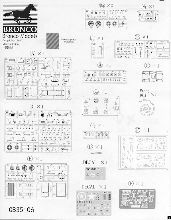 Typical of a Bronco kit, the detailing is superb and the kit contains a rather large number of parts for such a small model. This boxing includes the 10 cwt trailer that was often carried behind Jeeps for hauling cargo and other items, such as ammunition for light field guns.