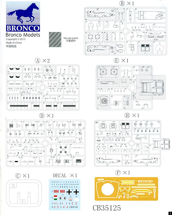 When one opens the box, it almost looks as if there are two kits included. However, that is due to two large sprues from what I guess is the late version from which one only uses a few bits. Typical of Bronco kits, the molding is first rate. There are a ton of parts, thanks to Bronco's commitment to providing the most detailed kit they can. This means that you don't get just a curbside kit but one that has complete engine and interior detailing.