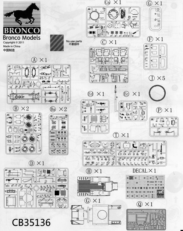 All of Bronco's kits are for an experienced modeler and this one is no exception as the detail provided is first rate. Despite being something of a curbside (as in no engine), just about every other part of the vehicle is provided and in quite some detail. The chassis is a separate piece that, once the suspension is attached, will fit onto the bottom of the main body piece. As a note, this body piece and the tire treads are boxed separately within the kit's package to to prevent damage.