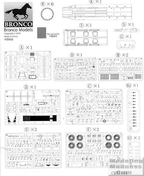 Bronco's instructions are contained in a 39 page color book. Each of the construction steps is well drawn and has detail drawings to help out. In some areas the builder will need to stretch some sprue and