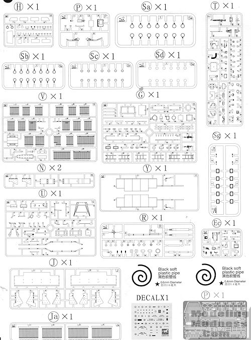 There is a nicely done photo etch fret for screens, a few equipment boxes and a myriad of smaller bits and pieces that are the norm with modern armor kits. This includes hinges so if one wants to represent the slatted sections 'open' one can do so. Also included are two sizes of plastic tubing in .4 and .6 mm sizes. These are used to represent what I guess are hydraulic lines.