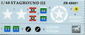 For their initial foray into 1/48 military vehicles, Bronco has picked a nice one. The Staghound has been, in my opinion, one of the better looking armored cars developed during WWII.