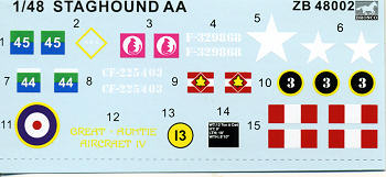 Instructions are well done with a variety of paint brands in the color chart. The paper for these instructions are not the usual slick paper of some kits, but more like what one gets with Revell AG kits. Markings are for vehicles, both in overall British Olive Drab #15. First is with the Royal Canadian Dragoons in Italy during 1944. This is the box art option. The second is with the 11th Hussars in Normady during July 1944. This particular option is the one the uses the white stars on the top and turret sides. It also has the Desert Rats marking used by the British 8th Army. The decal sheet is well printed and provides the usual markings these vehicles used.
